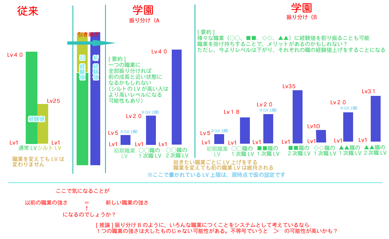 今まで、1キャラ1つのLV(シルトは別)だったのを、職業ごとにLVが存在するようになったこと