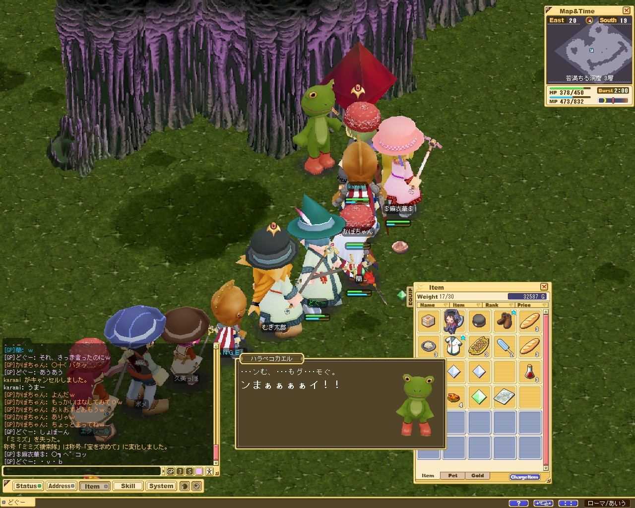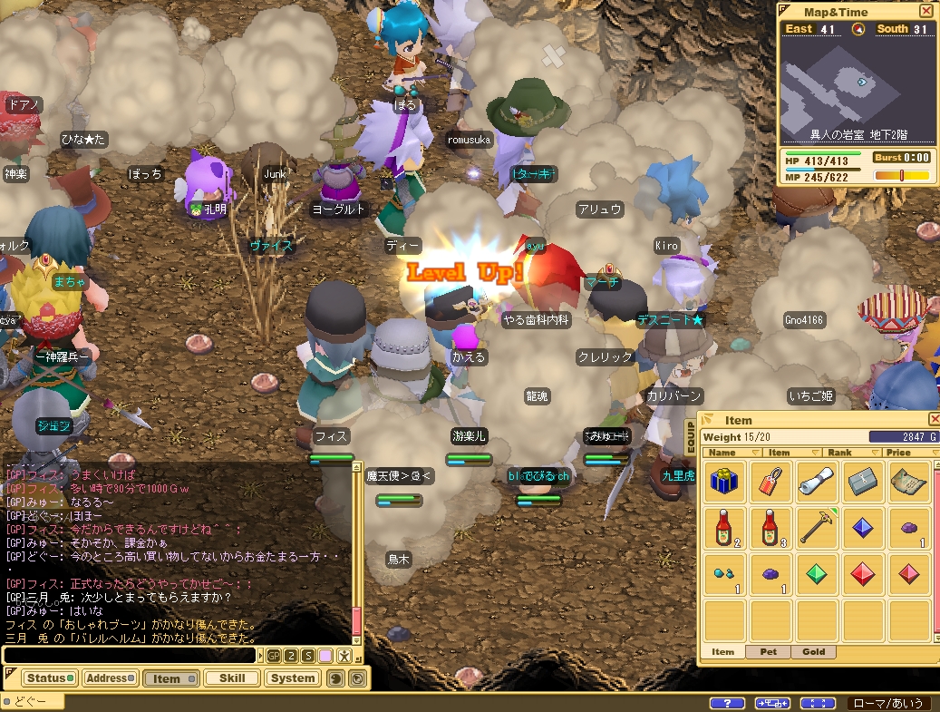 知らない人たちとパーティーを組んで、枯れ森や異人の岩室やゴブ穴にいきました